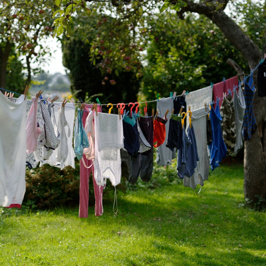 Du kan med fordel tørre tøjet udendørs, hvis vejret er til det, da sol og vind hjælper processen på vej.