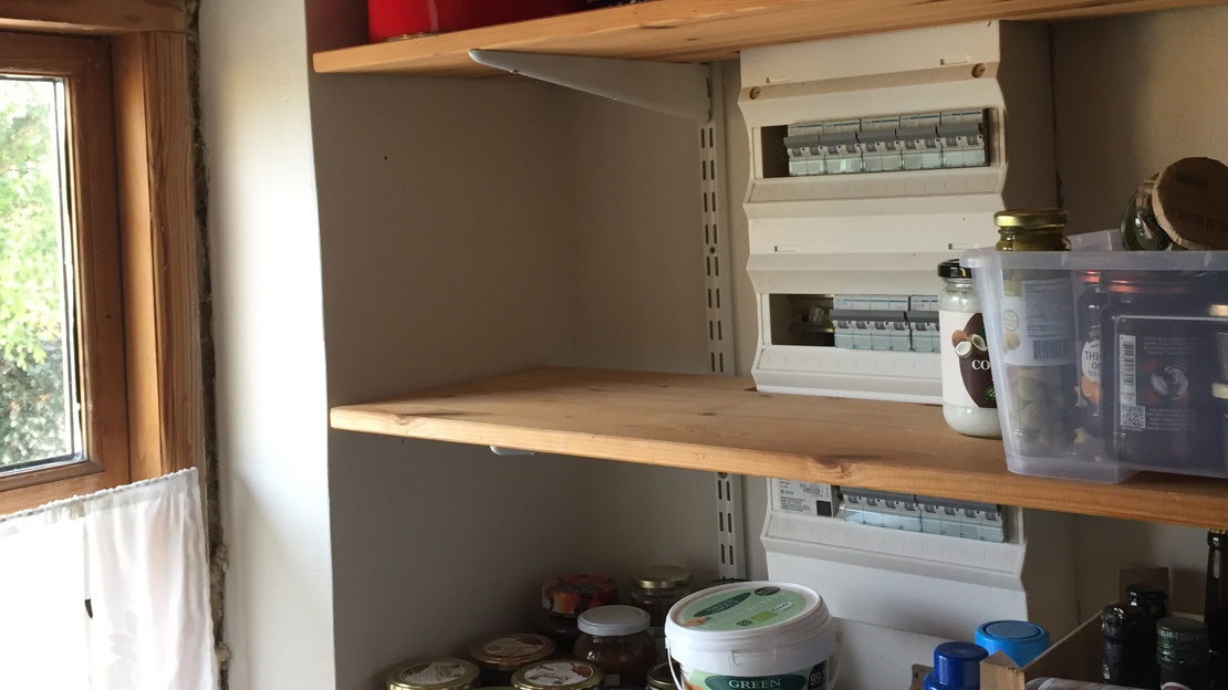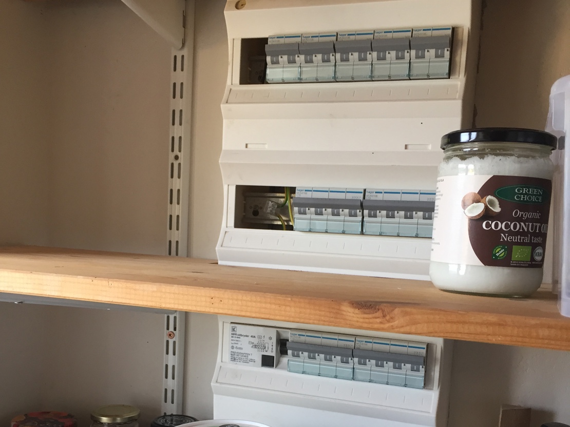 Der er opsat hylder foran eltavlen, som forhindrer adgang og afmontering af tavlekapslingen. Denne fejl får en K2 i elinstallations-rapporten.